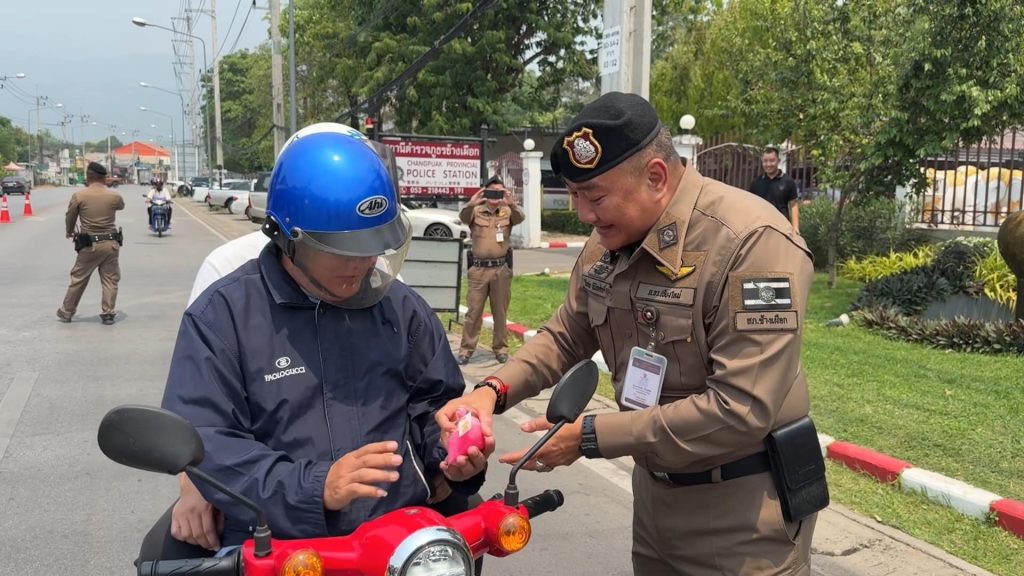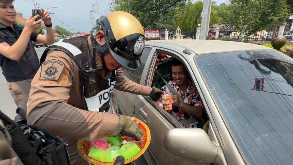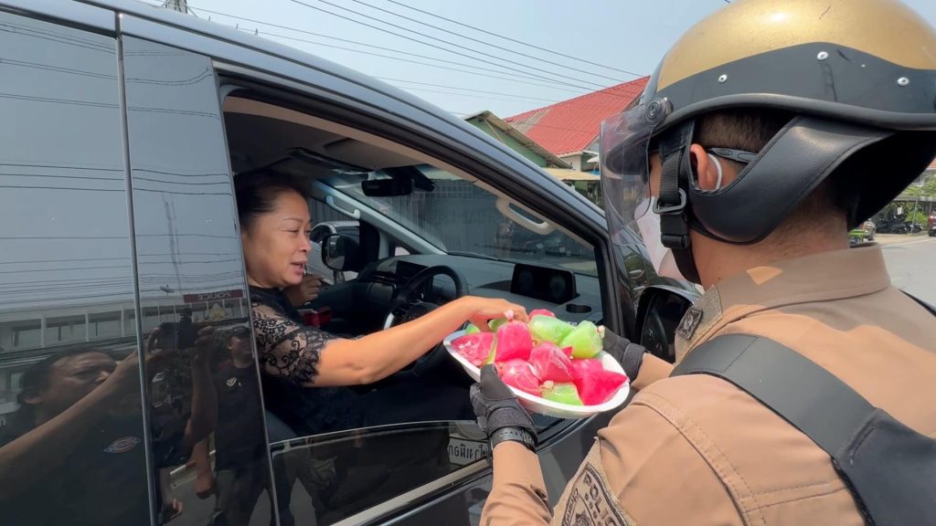 สภ.ช้างเผือก ออกปฏิบัติการดับร้อน ตั้งด่านแจกหวานเย็นอารมณ์ดี
