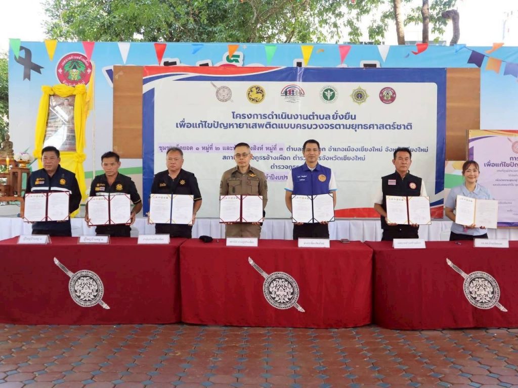 🗓️ วันที่ 11 ก.พ. 2569 เวลา 13.00 น. นำโดย พ.ต.อ.เสวก ชูศิริ ผกก.สภ.ช้างเผือก, พ.ต.ท.พชร พยัคฆา รอง ผกก.ป.ฯ, พ.ต.ท.ณัฐพล เอกฉันท์ รอง ผกก.สส.ฯ, พ.ต.ท.ฐณัฐน์ ปัดเป่า สวป.ฯ, พ.ต.ท.พลวัฒน์ บุญชู สวป.(ชส.)ฯ, พ.ต.ต.ชนก เจษฎารักษ์ สว.สส.ฯ พร้อมเจ้าหน้าที่ชุดปฏิบัติการตำบลยั่งยืนสถานีตำรวจช้างเผือก และภาคีเครือข่าย พร้อมประชาชนในชุมชนเป้าหมาย ได้ร่วมพิธีเปิด “โครงการตำบลยั่งยืน เพื่อแก้ไขปัญหายาเสพติดแบบครบวงจร ตามยุทธศาสตร์ชาติ ประจำปีงบประมาณ พ.ศ. 2569” พร้อมร่วมลงนามบันทึกข้อตกลงความร่วมมือ (MOU) ระหว่างหน่วยงานที่เกี่ยวข้อง โดยมี นายวรุตม์ วิศิษฏ์ศิลป์ นายอำเภอเมืองเชียงใหม่ เป็นประธานในพิธี การดำเนินการเป็นไปด้วยความเรียบร้อย