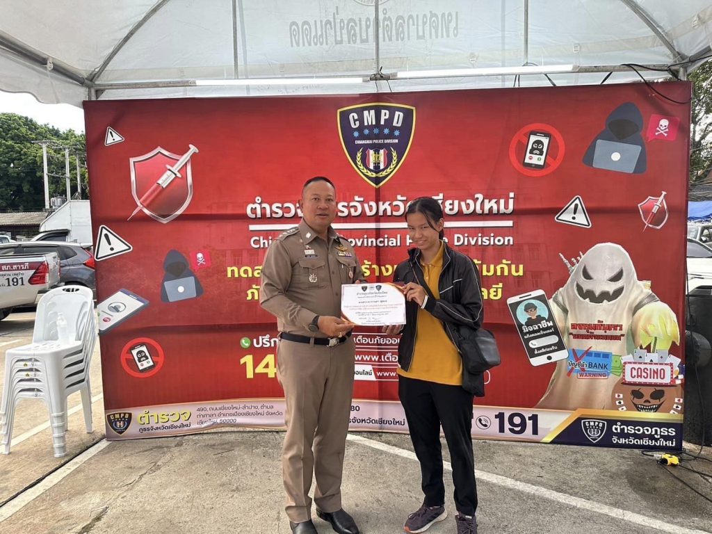 🎪ร่วมกันจัดบูธนิทรรศการ กิจกรรมเกี่ยวกับการป้องกันอาชญากรรมทางเทคโนโลยี บริเวณ ถนนคนเดินวันอาทิตย์ หน้า สภ.เมืองเชียงใหม่ โดยกิจกรรมครั้งนี้ จัดขึ้นเพื่อประชาสัมพันธ์ให้ความรู้แก่ประชาชนในเรื่องของการป้องกันอาชญากรรมทางเทคโนโลยี หรือ แก๊งค์คอลเซนเตอร์ และ จัดให้มีการทำแบบทดสอบความรู้ทั่วไป ในเรื่องของวิธีการรับมือจากแก๊งค์คอลเซนเตอร์ และ วิธีป้องกัน หากประชาชนเป็นผู้ถูกหลอก