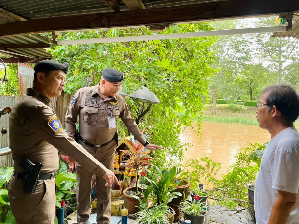 สภ.ช้างเผือก ลงพื้นที่ติดตามสถานการณ์ระดับน้ำในแม่น้ำปิง พร้อมแนะนำประชาชนในจุดเสี่ยงให้เตรียมพร้อมรับมือหากน้ำมีระดับสูงขึ้น