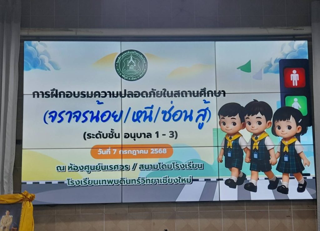 วันที่ 7 ก.ค.2568 เวลา 08.00 น.👮‍♂️ โดยการอำนวยการของ พ.ต.อ.เสเวก ชูศิริ ผกก.สภ.ช้างเผือก, พ.ต.ท.สมชาย หมายมั่น รอง ผกก.ป.สภ.ช้างเผือก มอบหมาย ร.ต.ท.บุญเลิศ พูลผล รอง สว.(ป) ครูตำรวจแดร์ สภ.ช้างเผือก ร่วมทำกิจกรรม ให้ความรู้ อบรม เรื่อง ความปลอดภัยในสถานที่ศึกษา (จราจรน้อย/ Active Shooter หนีซ่อน สู้ ) ให้กับนักเรียน ระดับชั้นอนุบาล จำนวน 235 คน โรงเรียน เทพบดินทร์วิทยาเชียงใหม่